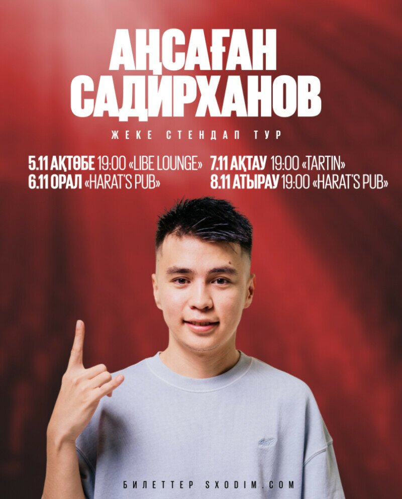 Стендап комик Аңсаған Садирханов Батыс Қазақстанға стендап турмен келеді.