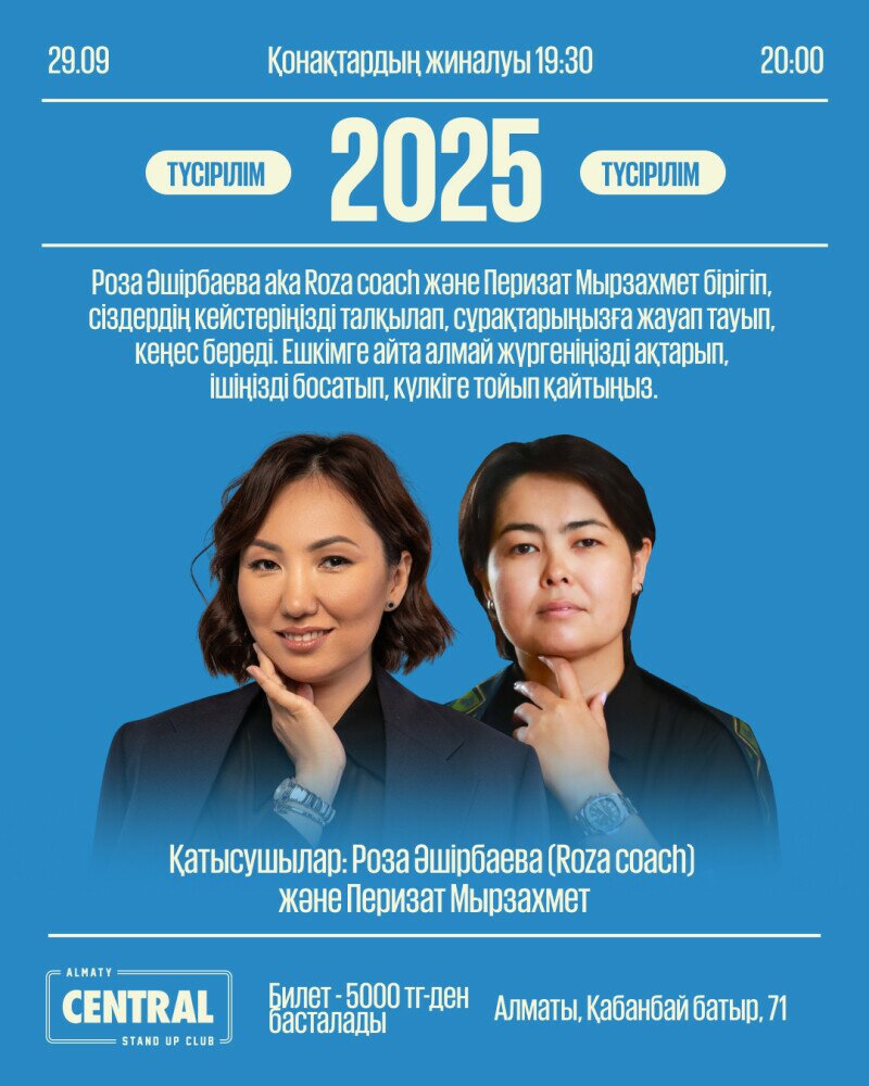 Роза Әшірбаева aka Roza coach және Перизат Мырзахмет бірігіп, сіздердің кейстеріңізді талқылап, сұрақтарыңызға жауап тауып, кеңес береді. Ешкімге айта алмай жүргеніңізді ақтарып, ішіңізді босатып, күлкіге тойып қайтыңыз.