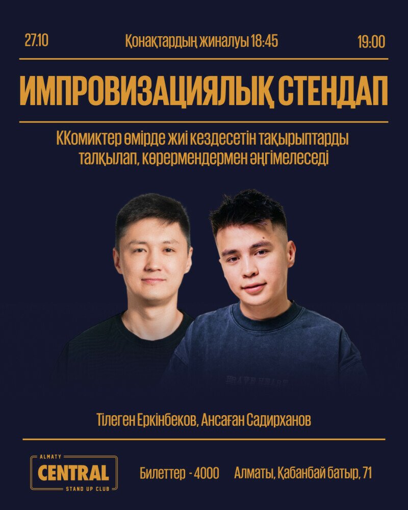 Бұл іс-шара тек көңіл көтеру мақсатында жасалып отыр. Ешкімді ренжіту, қорлау немесе жынына тию мақсатын алдына қойып отырған жоқ. Сахнадан айтылған сөздерді тек әзіл ретінде қабылдауларыңызды сұраймыз. Билет сатып ала отырып, төменде көрсетілген шарттармен толық келісетініңізді растайсыз.