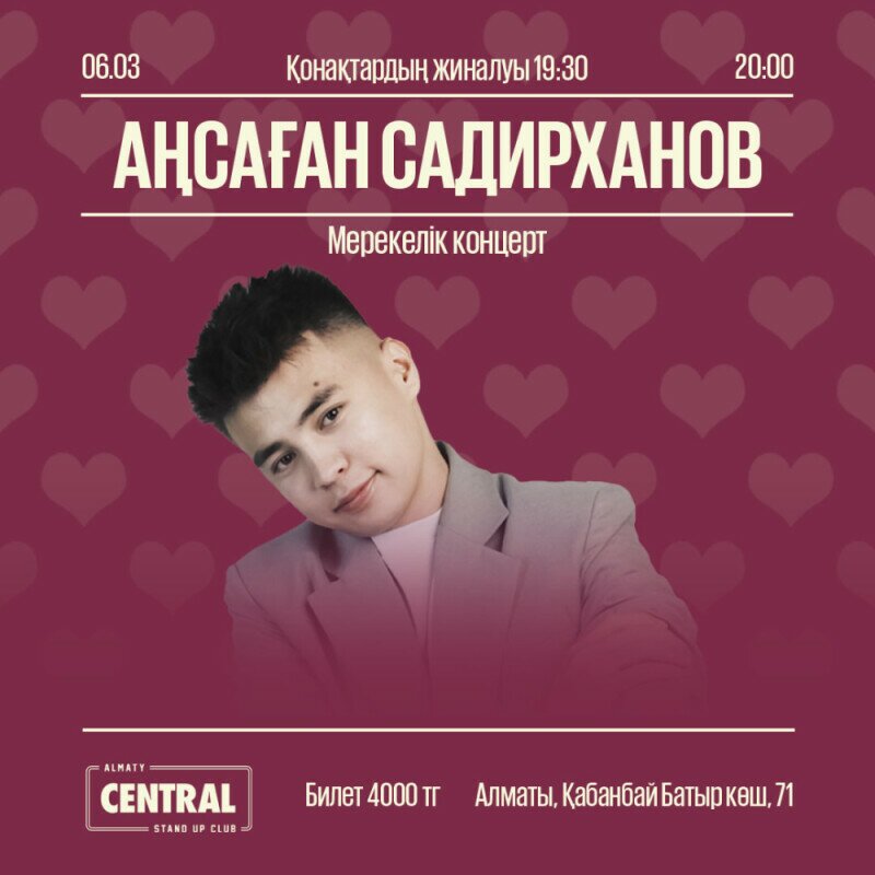 Стендап комик, @qazaqstandup резиденті Садирханов Аңсағанның жеке стендап концерті өтеді.