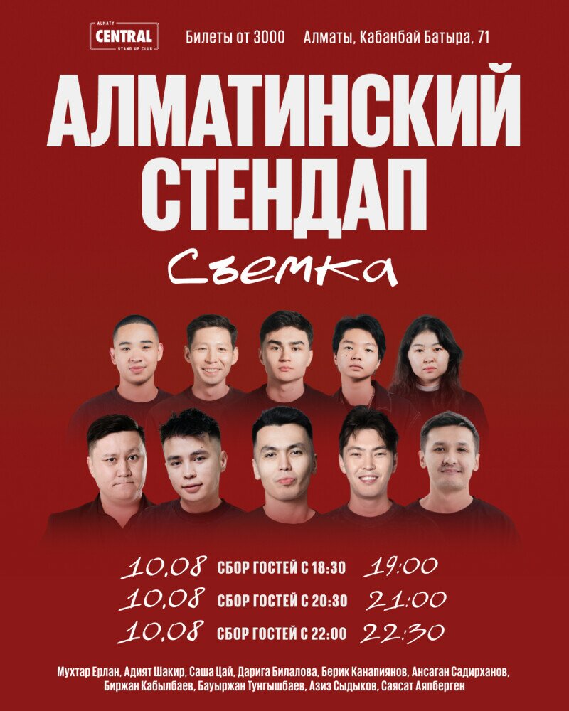 Алматинский воздух, знакомые лица, шутки, в которых угадывается город. Здесь не играют роль громкие имена — здесь важнее атмосфера и качество рассказываемого материала. И всё это здесь!