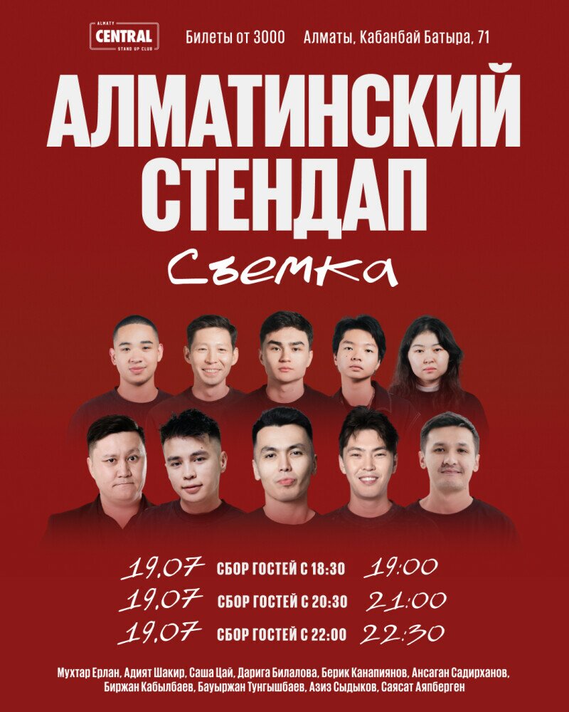 Алматинский воздух, знакомые лица, шутки, в которых угадывается город. Здесь не играют роль громкие имена — здесь важнее атмосфера и качество рассказываемого материала. И всё это у нас есть!