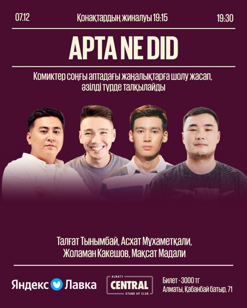 Сахнадағы әзілкештің сөзін бөлмеуге, тек сізбен арнайы сөйлескен жағдайда ғана жауап беруіңізді сұраймыз.