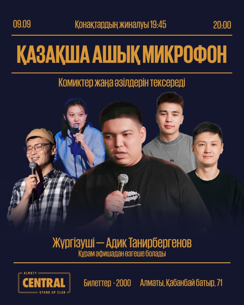 Сахнадағы әзілкештің сөзін бөлмеуге, тек сізбен арнайы сөйлескен жағдайда ғана жауап беруіңізді сұраймыз.