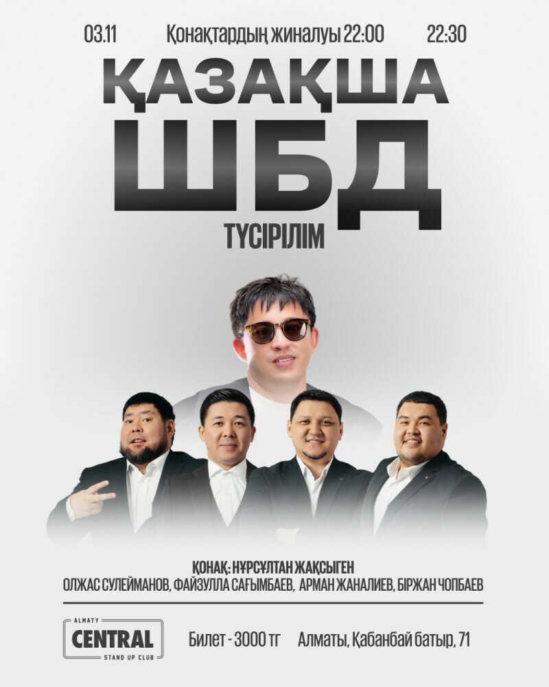 Бұл іс-шара тек көңіл көтеру мақсатында жасалып отыр. Ешкімді ренжіту, қорлау немесе жынына тию мақсатын алдына қойып отырған жоқ. Сахнадан айтылған сөздерді тек әзіл ретінде қабылдауларыңызды сұраймыз. Билет сатып ала отырып, төменде көрсетілген шарттармен толық келісетініңізді растайсыз.