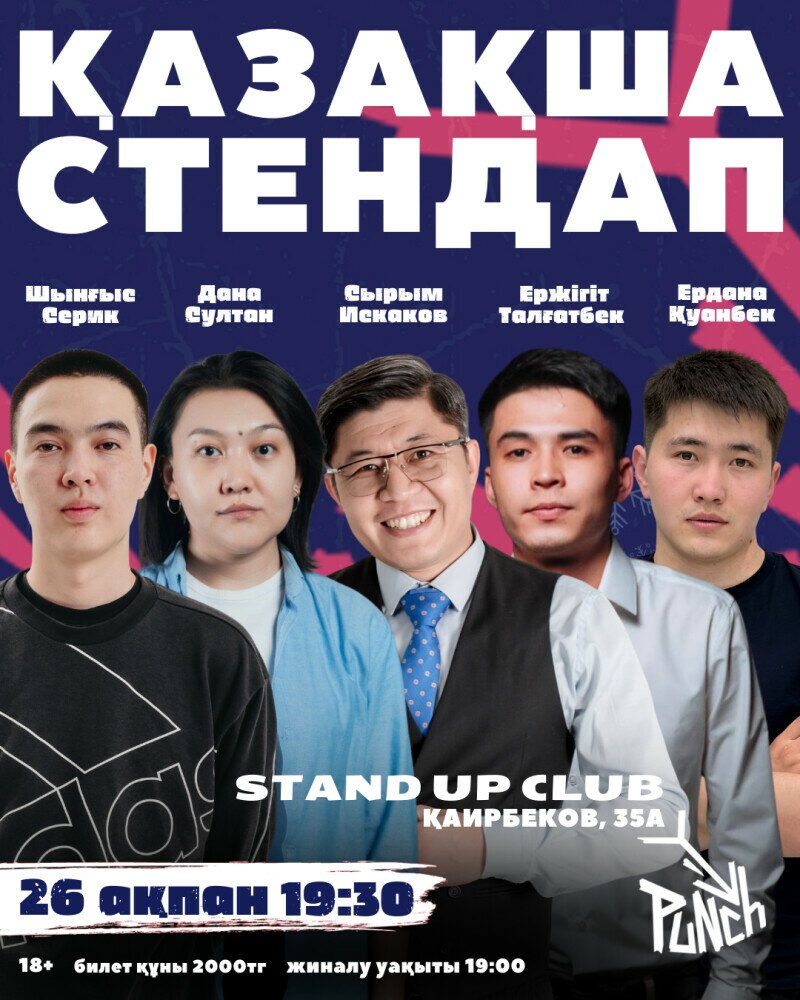 Жақын сахнасы, жайлы атмосферасы, дәмді асханасы мен бары бар Punch Stand-Up Club-та кездесеміз.
