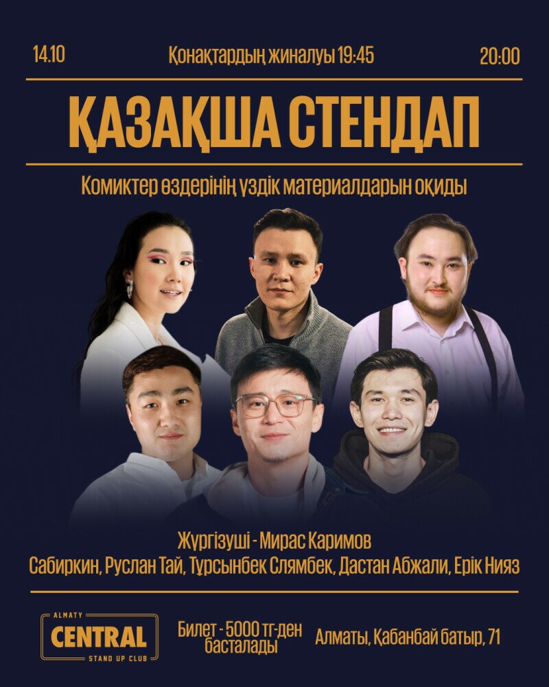 Алматы әзілкештерін стенд-ап кешіне шақырамыз! Өмір тақырыптары мен тапқыр бақылауларға толы кеш сізді the Central Stand up club-та күтеді!