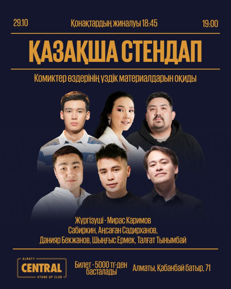 Алматы әзілкештерін стенд-ап кешіне шақырамыз! Өмір тақырыптары мен тапқыр бақылауларға толы кеш сізді the Central Stand up club-та күтеді!