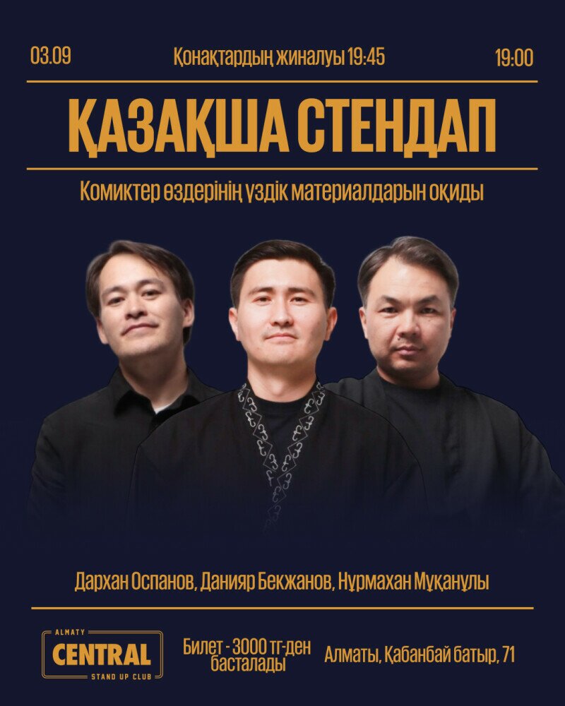Алматы әзілкештерін стенд-ап кешіне шақырамыз! Өмір тақырыптары мен тапқыр бақылауларға толы кеш сізді the Central Stand up club-та күтеді!