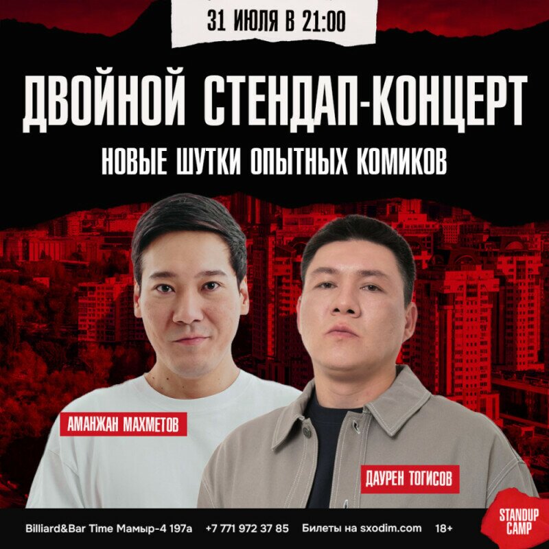 Даурен Тогисов — пожалуй, один из самых опытных комиков Алматы. Вы можете знать его как "того самого из рилсов" под ником togy_dell. На стендап-сцене юмор Даурена особенно находит отклик у взрослой аудитории. Он часто рассказывает о семье, о житейских проблемах, поднимает социальные темы. Честный, зрелый, искренний - Даурен точно завоюет ваше внимание.
