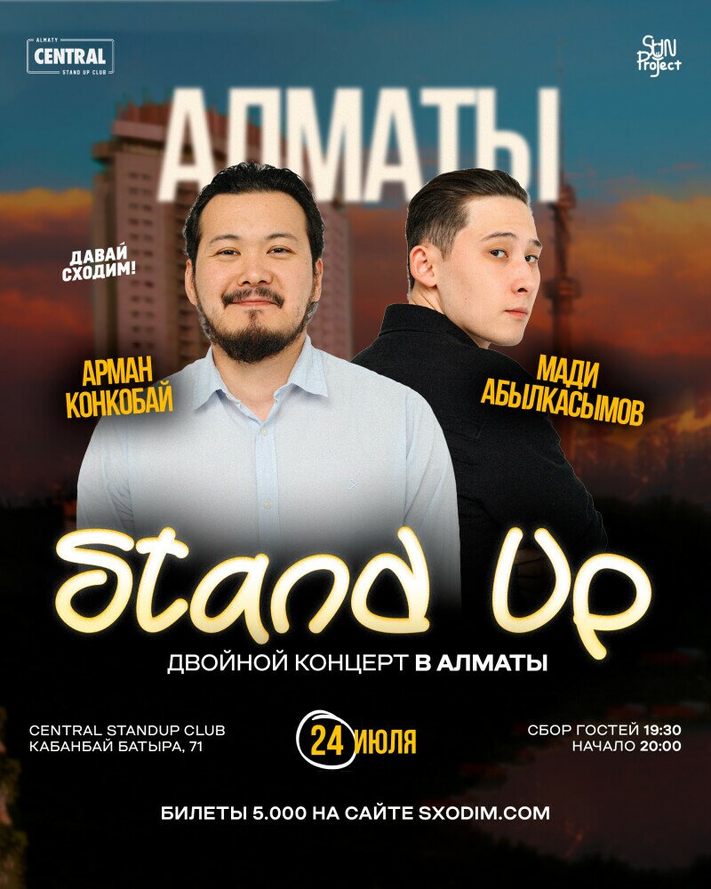 Два комика, два стиля, один вечер. Арман Конкобай и Мади Абылкасымов выходят на сцену с двойным концертом в Алматы!