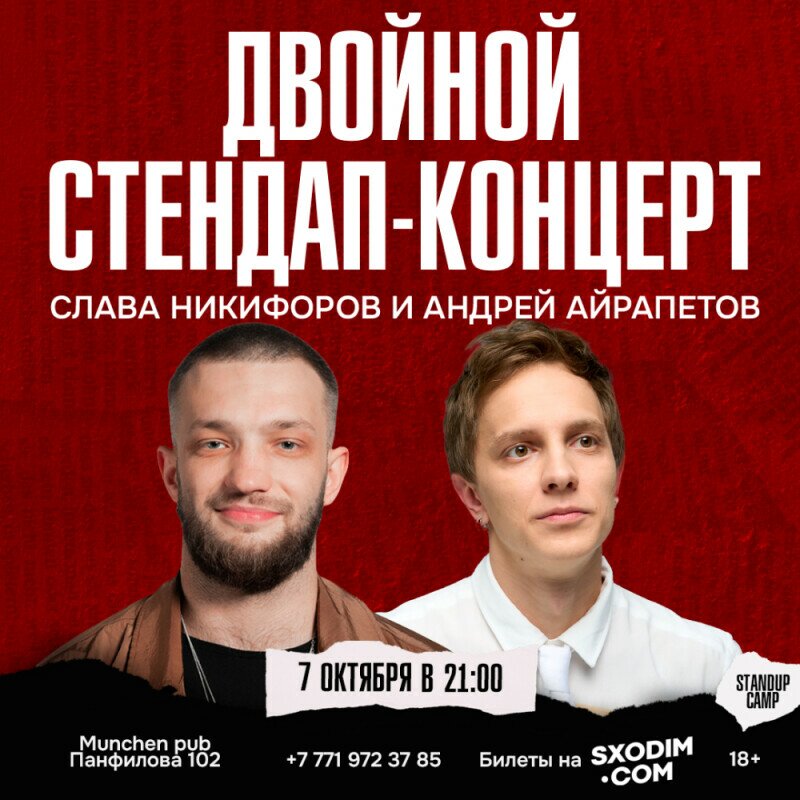 На сцену выйдут два комика, два разных стиля юмора и один вечер, который вы не забудете!