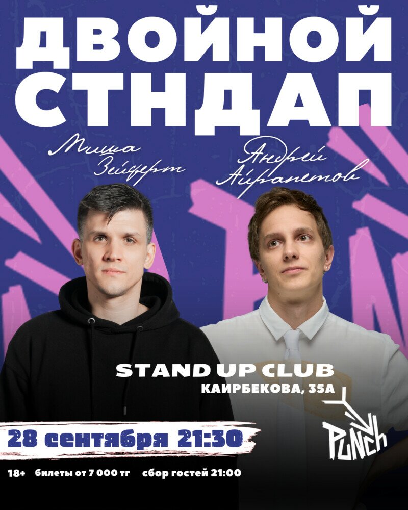 Смех до слёз, неожиданные повороты и атмосфера Punch Stand-Up Club с баром и вкусными бургерами — идеальный вечер для компании друзей!