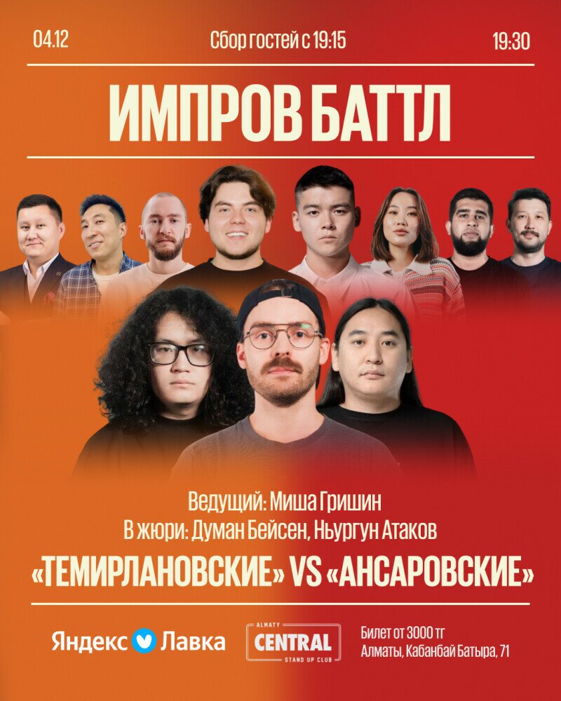 Команда Темирлана Жалдыбаева сразится в импровизации с командой Ансара Ильясова, а кто победит будет решать опытное жюри.
