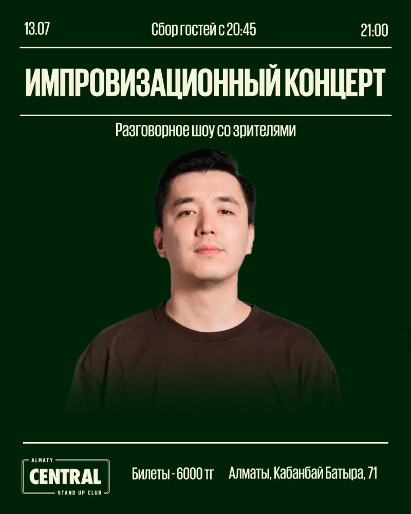 На сцене Almaty Central Stand up club выступят Мадияр Нурманбетов в рамках импровизационного стендап-концерта!