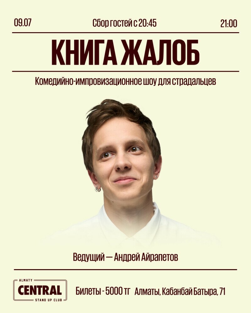 Книга жалоб — анти-терапевтическое импровизационное шоу с Андреем Айрапетовым.