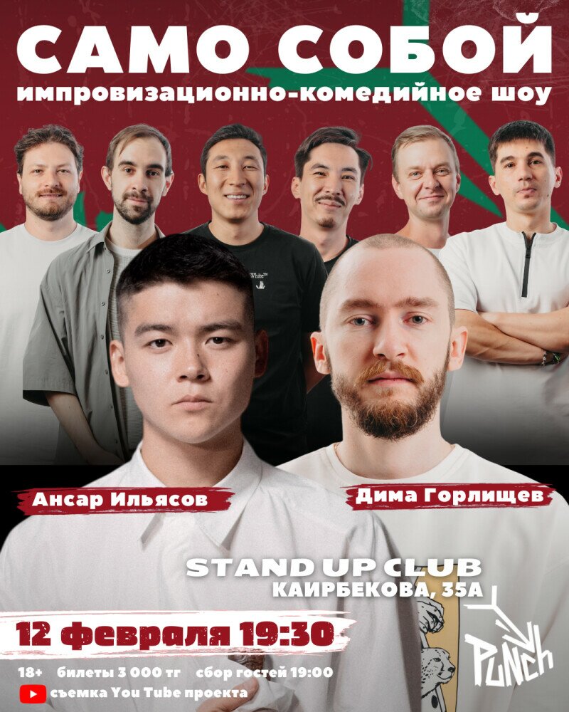 «Само собой» — это импровизационное шоу! Шесть комиков и один гость не знают, что их ждёт, но точно знают, что будет весело. Шутки, персонажи и миниатюры — всё рождается на глазах у зрителей.