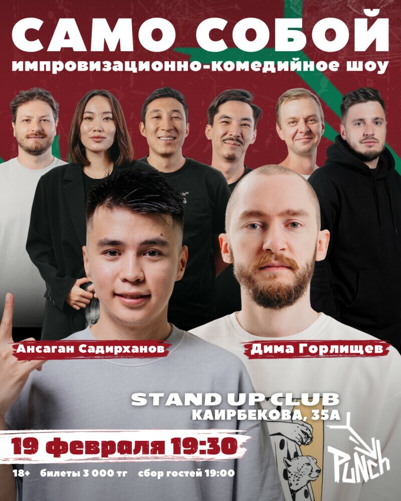 «Само собой» — это импровизационное шоу! Шесть комиков и один гость не знают, что их ждёт, но точно знают, что будет весело. Шутки, персонажи и миниатюры — всё рождается на глазах у зрителей.