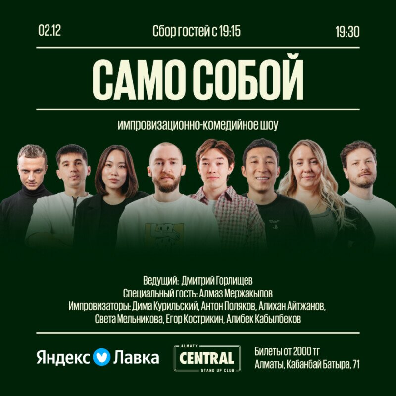 «Само собой» — это импровизационное шоу! Шесть комиков и один гость не знают, что их ждёт, но точно знают, что будет весело. Шутки, персонажи и миниатюры — всё рождается на глазах у зрителей.