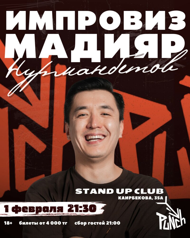 Импровизационный стендап-концерт Мадияра Нурманбетова (1 февраля)