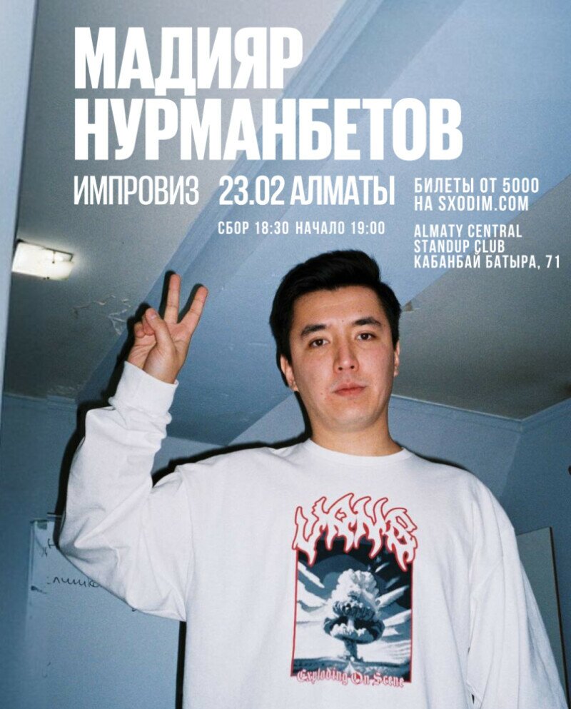 На сцене Almaty Central Stand up club выступят Мадияр Нурманбетов в рамках импровизационного стендап-концерта!
