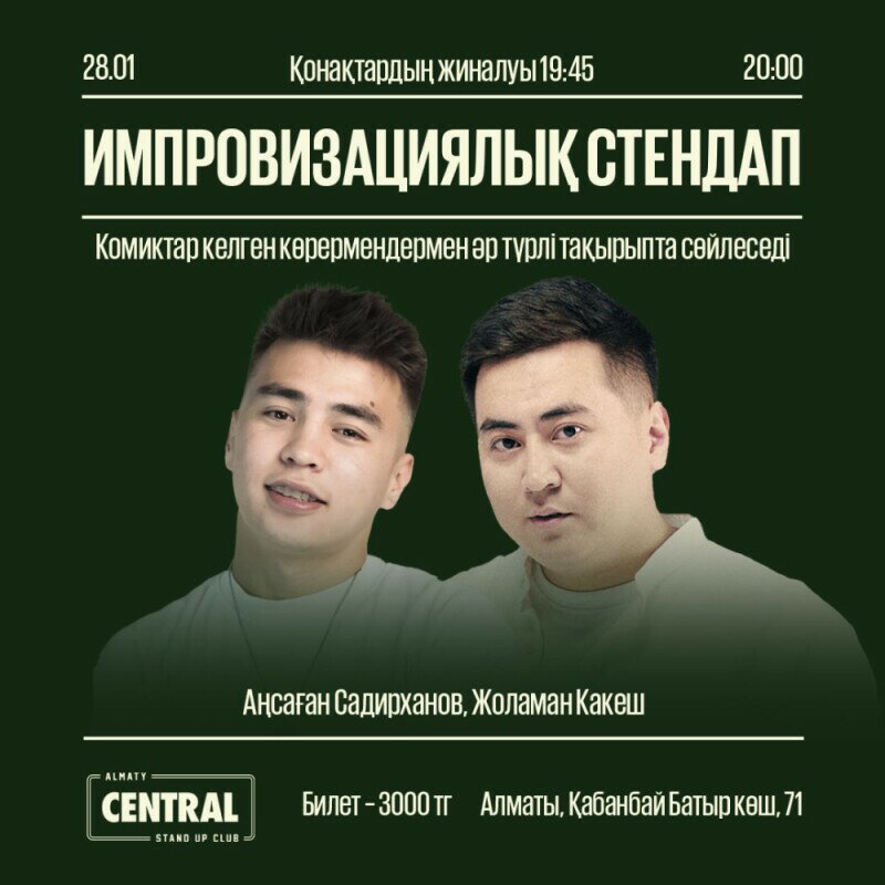 Бұл іс-шара тек көңіл көтеру мақсатында жасалып отыр. Ешкімді ренжіту, қорлау немесе жынына тию мақсатын алдына қойып отырған жоқ. Сахнадан айтылған сөздерді тек әзіл ретінде қабылдауларыңызды сұраймыз. Билет сатып ала отырып, төменде көрсетілген шарттармен толық келісетініңізді растайсыз.