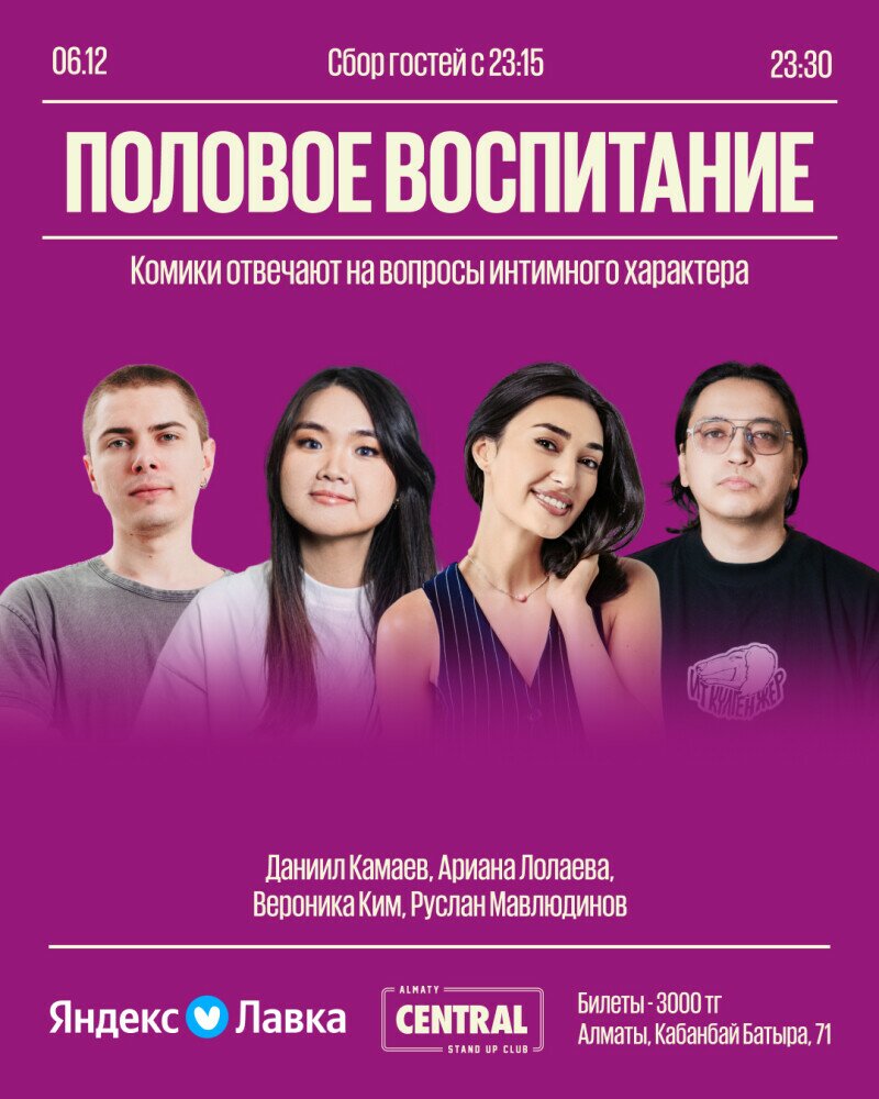Данное мероприятие носит исключительно развлекательный характер, не несет в себе цель задеть/ обидеть/ оскорбить чьи-либо чувства. Все, что сказано на сцене, представлено исключительно в образовательном и юмористическом ключе. Приобретая билеты, вы полностью принимаете данное предупреждение и нижеизложенные правила.