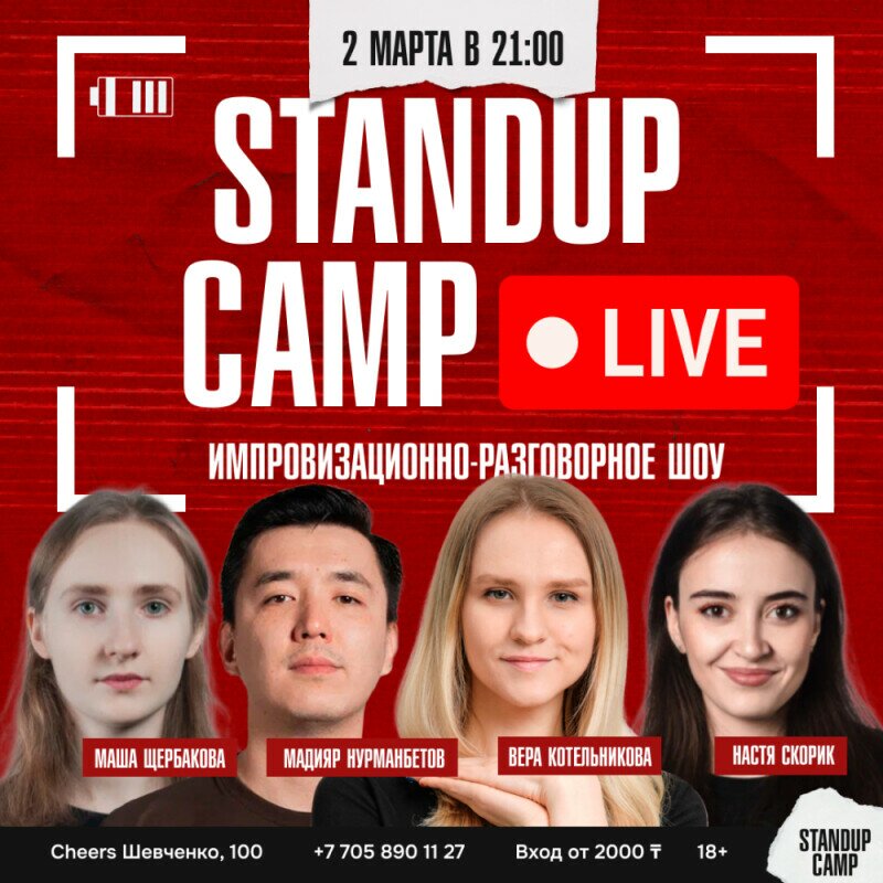 Комики: Маша Щербакова, Мадияр Нурманбетов, Вера Котельникова и Настя Скорик.