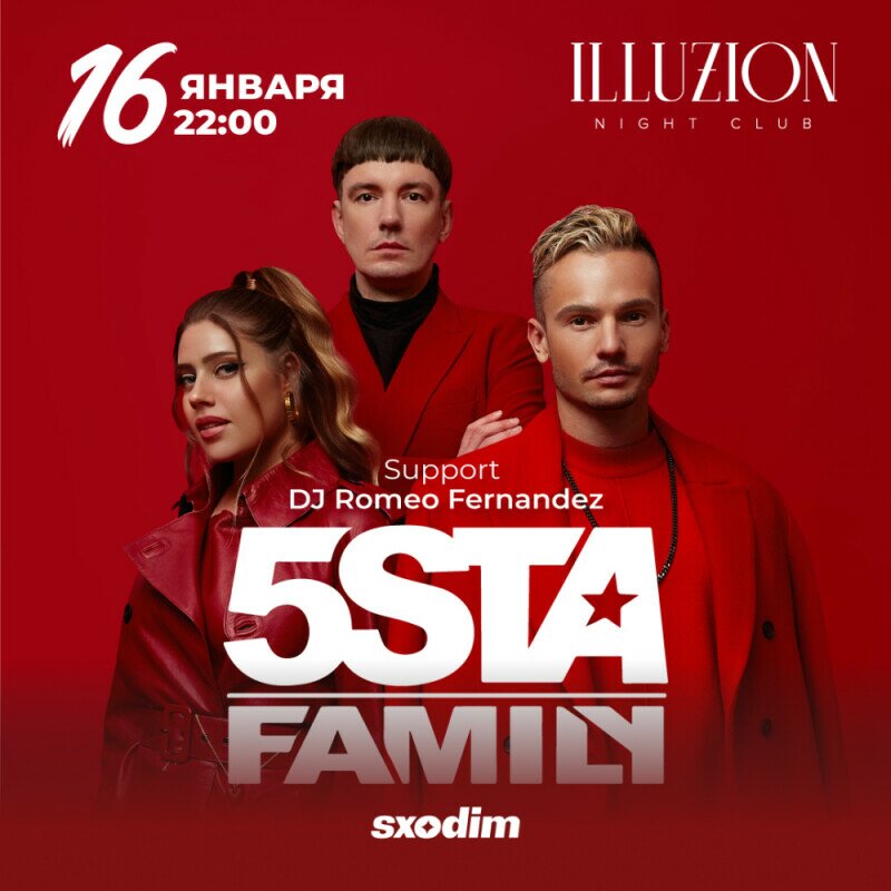 Вас ждёт живой звук, мощная энергетика, танцы, эмоции и тот самый вайб, за который 5sta Family любят тысячи слушателей. Это отличный повод собраться с друзьями, отвлечься от будней и провести вечер в ритме музыки.