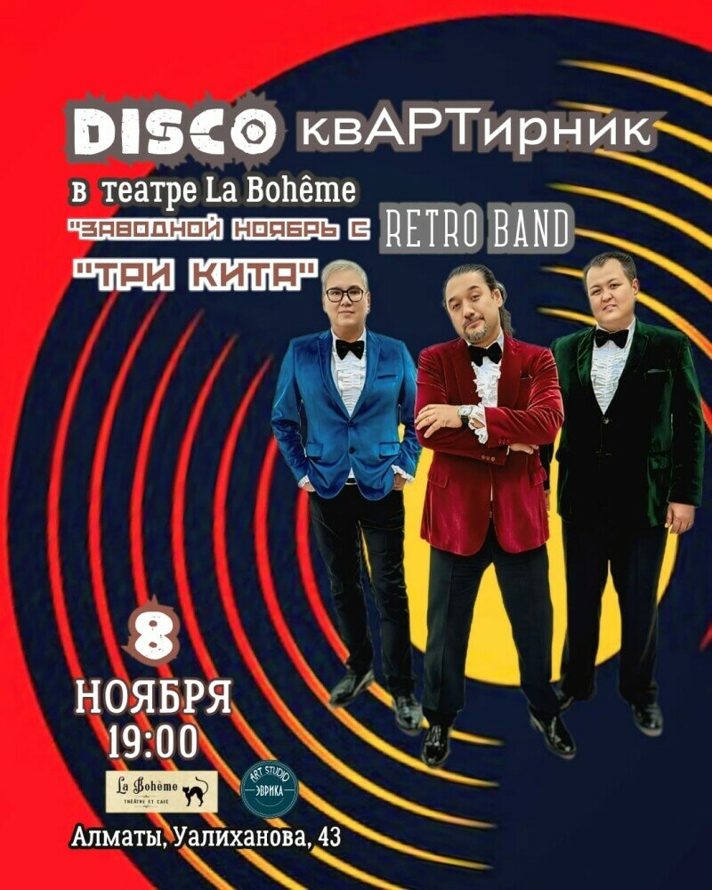 Театр La Bohème приглашает на DISCO-квАРТирник «Заводной ноябрь» с ретро-бэндом «Три кита»!
