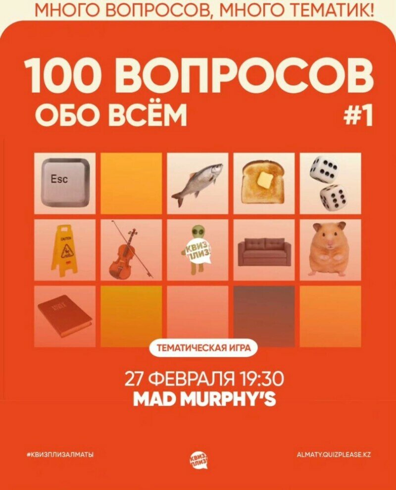 Если бы в анкете Земли было всего 100 пунктов, они были бы такими. Здесь подобрали много вопросов на самые разные и интересные темы. Один человек вряд ли успеет отгадать все ответы, ведь времени на принятие решения будет меньше, чем в обычной игре. Советуем собрать команду всезнаек, назначить ответственных по каждой тематике и весело соревноваться с другими командами за звание самой эрудированной!