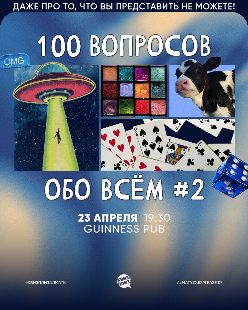 Если бы в анкете Земли было всего 100 пунктов, они были бы такими. Здесь собрали много вопросов на самые разные и интересные темы. Один человек вряд ли успеет отгадать все ответы, ведь времени на принятие решения будет меньше, чем в обычной игре. Советуем собрать команду всезнаек, назначить ответственных по каждой тематике и весело соревноваться с другими командами за звание самой эрудированной!