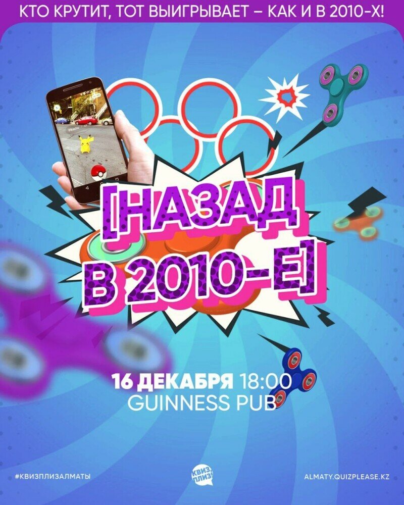 Квиз, плиз! — это не только интеллектуальная игра, но и отличный повод для встречи с друзьями. Вы приходите командой, сидите за столом в баре, общаетесь, вкусно пьёте и едите, при этом отвечаете на интересные вопросы, серьёзные и не очень. Полюбившийся формат тематических игр, в которых вспоминаем самое яркое, что произошло в отдельно взятом десятилетии.