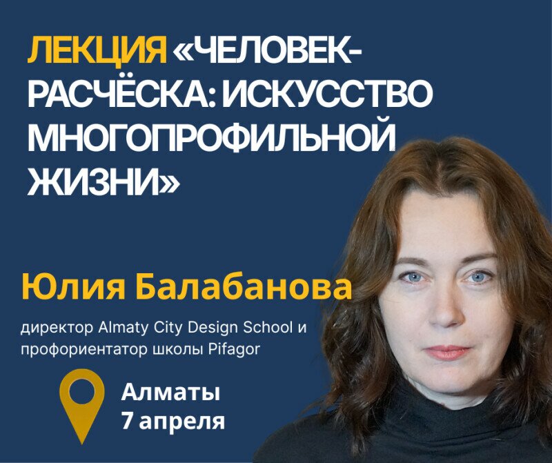 На лекции в Алматы 7 апреля предприниматель и профориентатор Юлия Балабанова расскажет о новом типе карьеры, возможностях и сложностях этого пути.