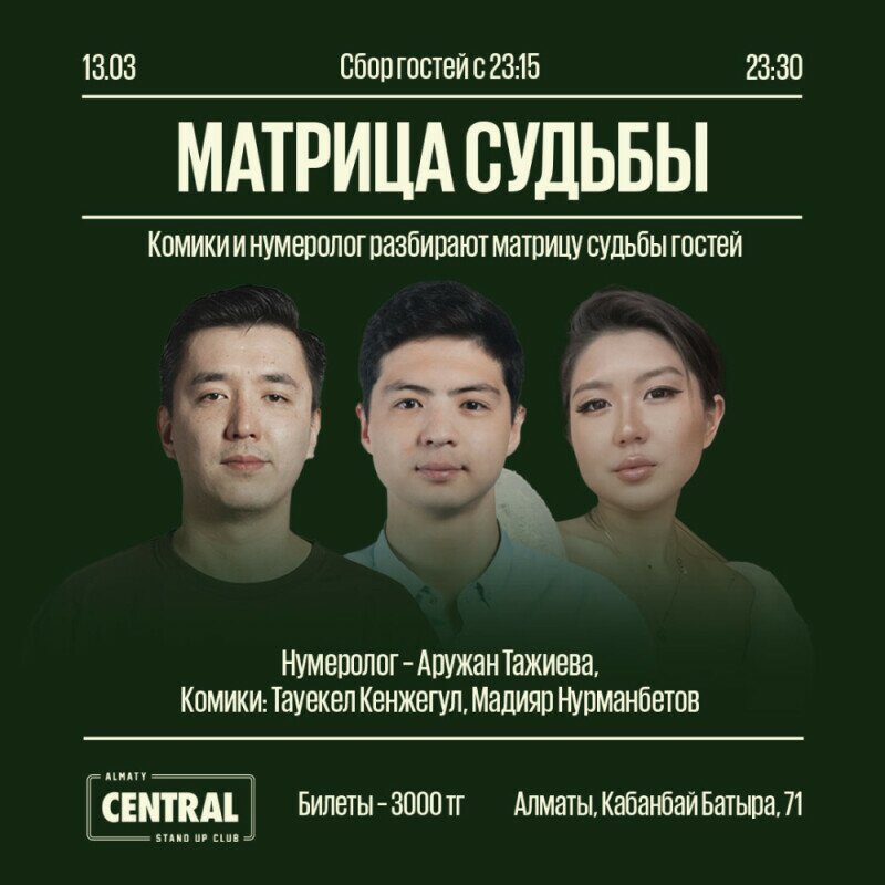 Формат: нумеролог и Комики разбирают матрицу судьбы гостей и отвечают на интересующие их вопросы.