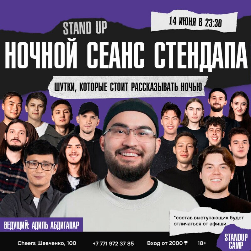 На сцене выступит 7 опытных и перспективных комиков Алматы, имена которых мы держим в секрете. Кто именно выступит — узнаете только на самом мероприятии.