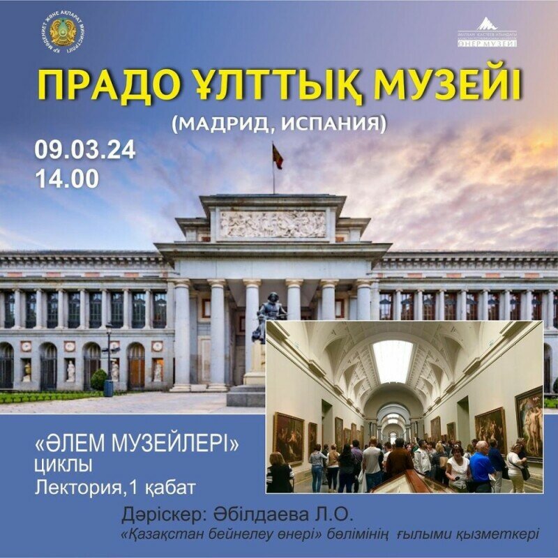 2024 жылдың 9 наурызында сағат 14:00-де Әбілхан Қастеев атындағы ҚР Мемлекеттік өнер музейінде «Әсем Әлем» өнер Академиясы аясында, «Әлем музейлері» циклының кезекті дәрісі өтеді. Дәріс тақырыбы - «Прадо ұлттық музейі» (Мадрид, Испания)