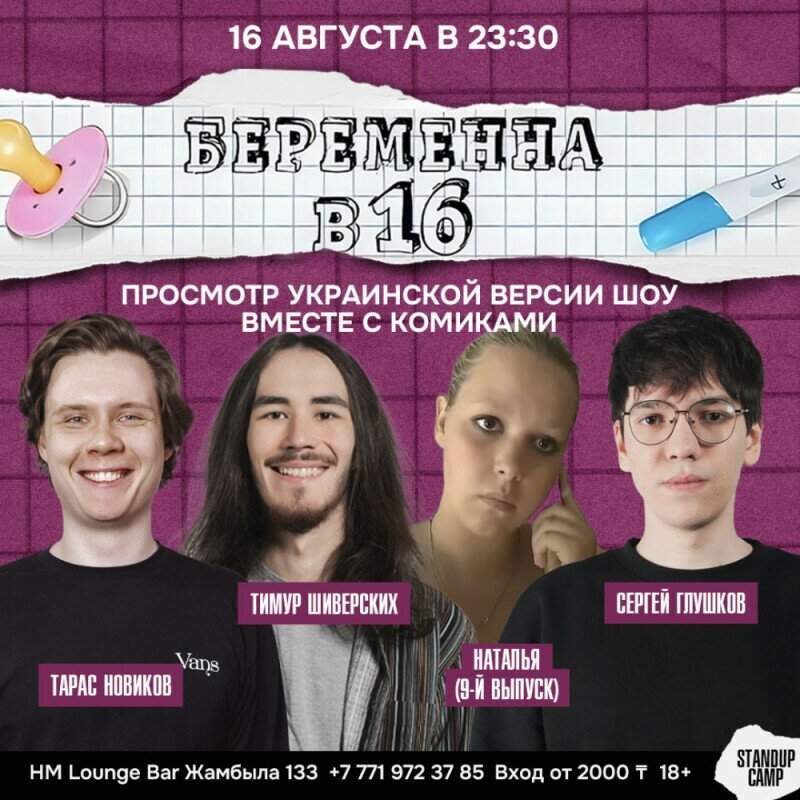 Просмотр на большом экране уже великого и всеми полюбившегося украинского реалити-шоу «Беременна в 16» вместе с молодыми стендап-комиками.