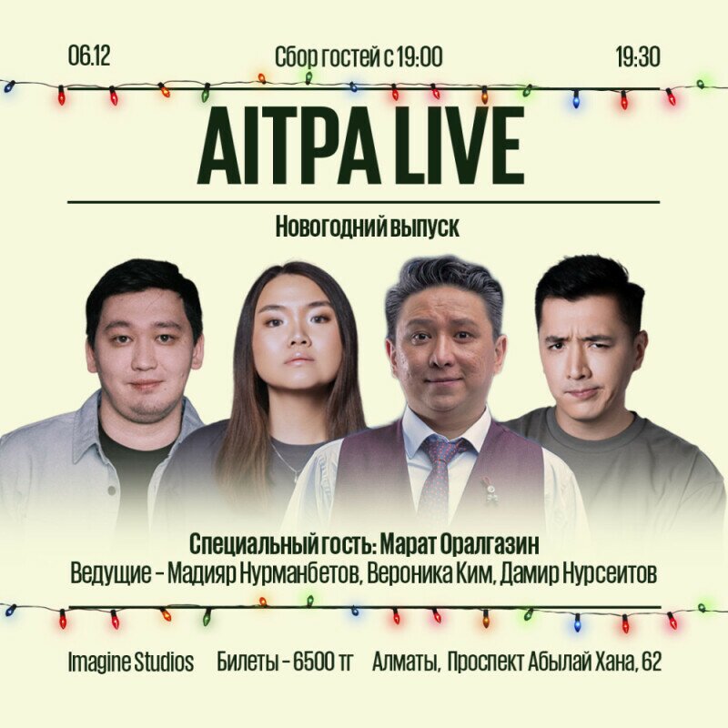 AITPA - авторское шоу, где стендап-комики Мадияр Нурманбетов, Вероника Ким и Дамир Нурсеитов обсуждают житейские и актуальные темы, шутят обо всем и всех вместе с приглашенным гостем в окружении живой аудитории.