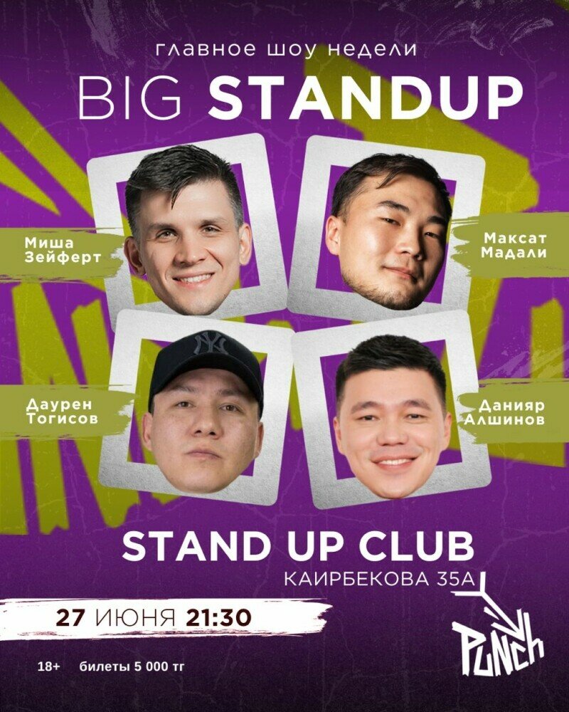 Биг cтендап — самое смешное мероприятие недели. На сцене — лучшие комики с материалом, который уже взрывал залы. Вы услышите отточенные шутки, проверенные зрителями.