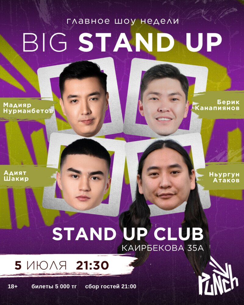 Биг Стендап — самое смешное мероприятие недели. На сцене — лучшие комики с материалом, который уже взрывал залы. Вы услышите отточенные шутки, проверенные зрителями.