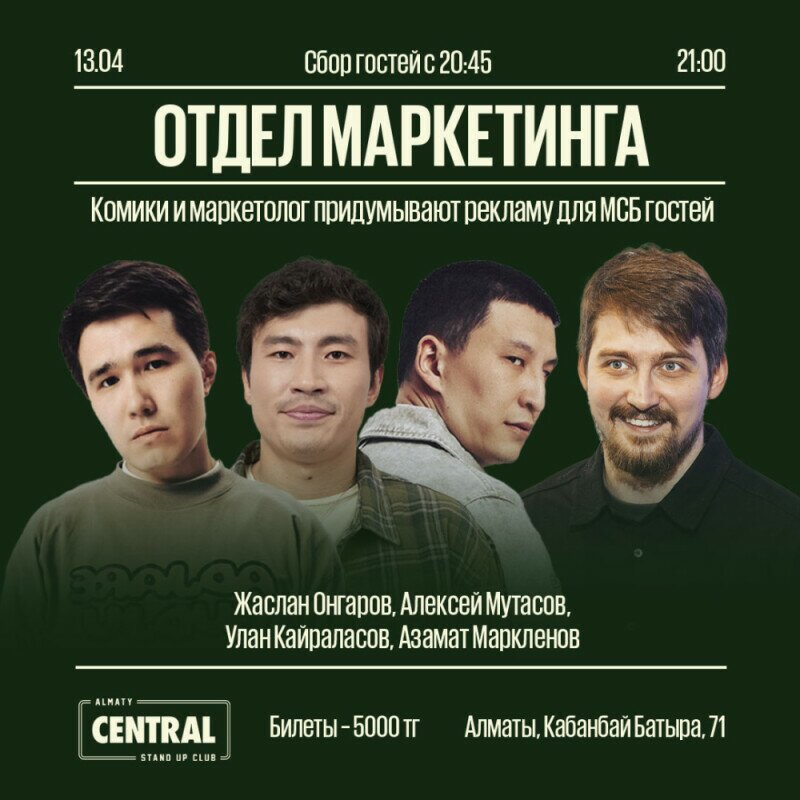 Кайраласов Улан, Маркленов Азамат, Онгаров Жаслан, Мутасов Алексей придумывают рекламу для МСБ гостей.