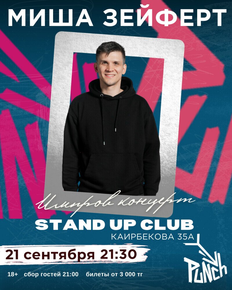 Готовы к вечеру, когда ни одна шутка не повторится? Миша Зейферт — один из самых ярких и остроумных комиков Алматинской сцены — выйдет на сцену без сценария, чтобы шутить на ваши темы, придумывать истории на ходу и превращать любую случайность в смех.