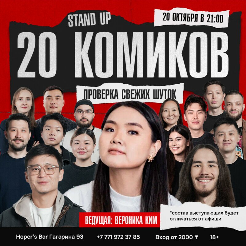 На одной сцене за вечер выступят 20 комиков и каждый принесет вам свой взгляд, стиль и свежие шутки.