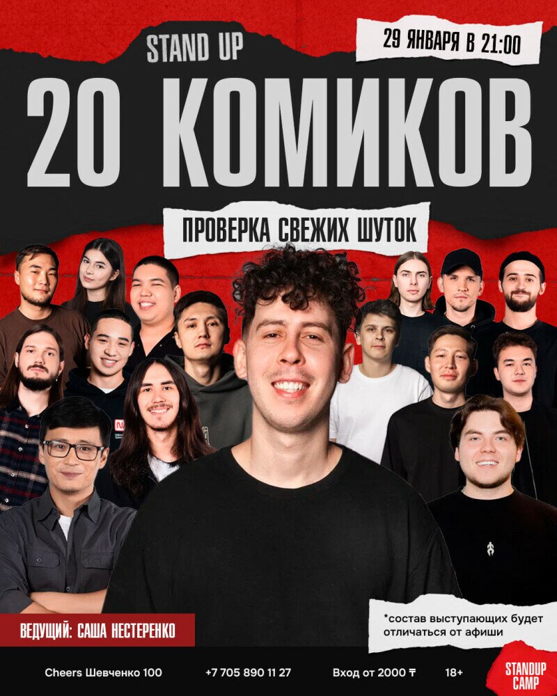 Опытные и начинающие комики проверяют свой новый материал. Перед вами выступят 20 человек за 1 вечер!