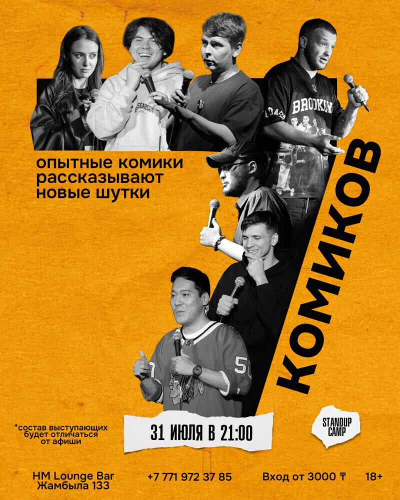 Устройте этим вечером себе приятный ужин в компании стендап-комиков Алматы! Семь опытных комиков расскажут новые шутки.
