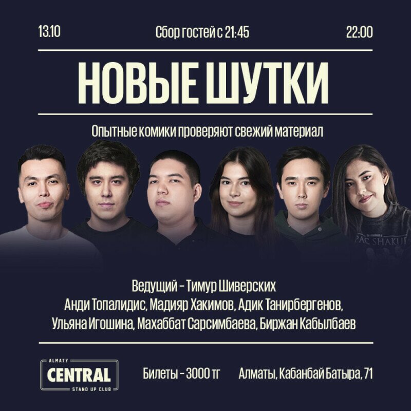 Участники: Анди Топалидис, Мадияр Хакимов, Адик Танирбергенов, Ульяна Игошина, Махаббат Сарсимбаева, Биржан Кабылбаев.
