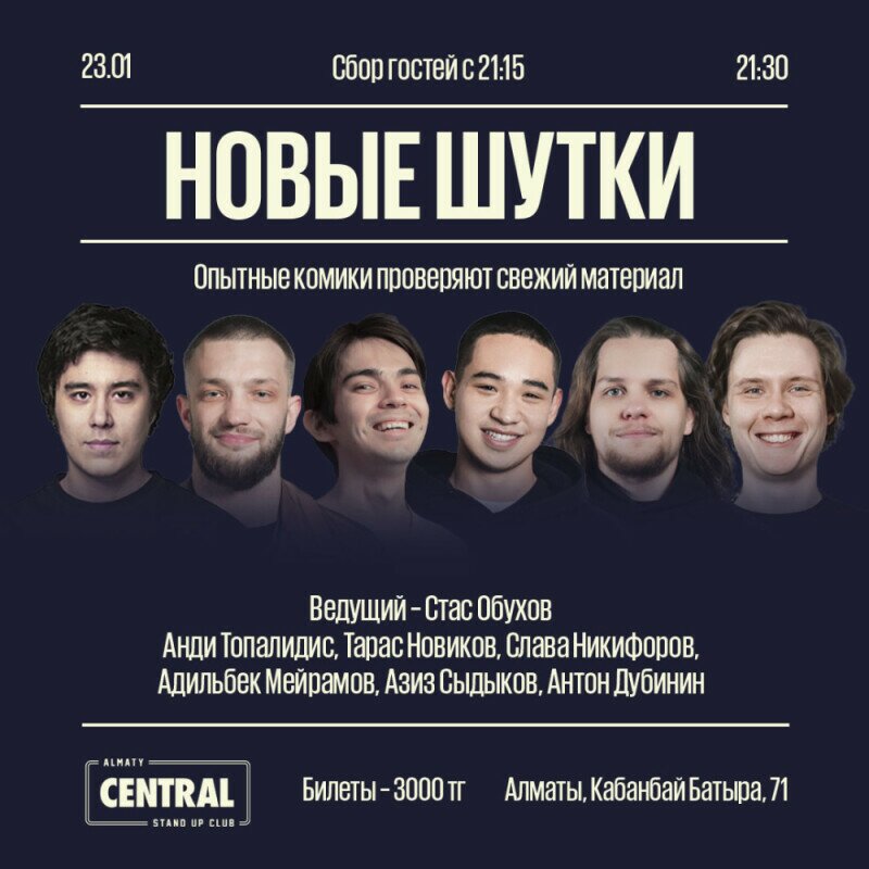 Комики: Анди Топалидис, Тарас Новиков, Слава Никифоров, Адильбек Мейрамов, Азиз Сыдыков, Антон Дубинин.