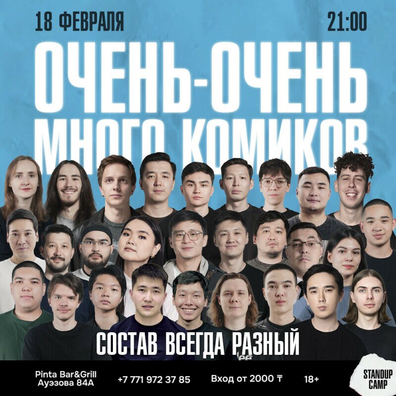 Среди выступающих можно будет встретить участников разных популярных шоу с YouTube, таких как “Almaty Central Stand-Up Club”, “Stand-Up Astana”, шоу “На слабо”, “Тюркский разговорник”, шоу “Setaptar”, открытый микрофон на ТНТ, и из других проектов.