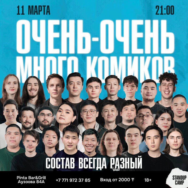 Среди выступающих можно будет встретить участников разных популярных шоу с YouTube, таких как “Almaty Central Stand-Up Club”, “Stand-Up Astana”, шоу “На слабо”, “Тюркский разговорник”, шоу “Setaptar”, открытый микрофон на ТНТ, и из других проектов.